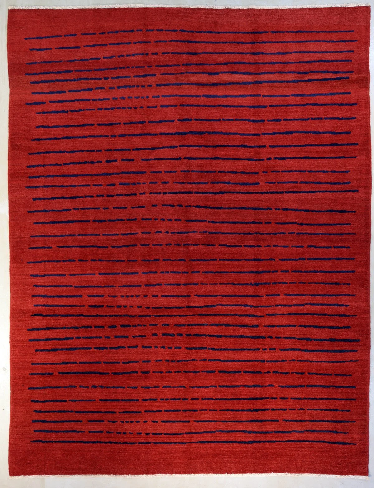 This piece demonstrates that truth beautifully. Its minimalistic, abstract composition, formed through layered blocks of colour, is elevated by the exceptional hand-spun yarn produced by Kurdish women using the wool of their own highland flocks. The yarn spun by these women was then dyed by one of Iran’s greatest dye-masters, Mr Abbas Sayyahi, renowned for reviving the ancient techniques of natural dyeing.