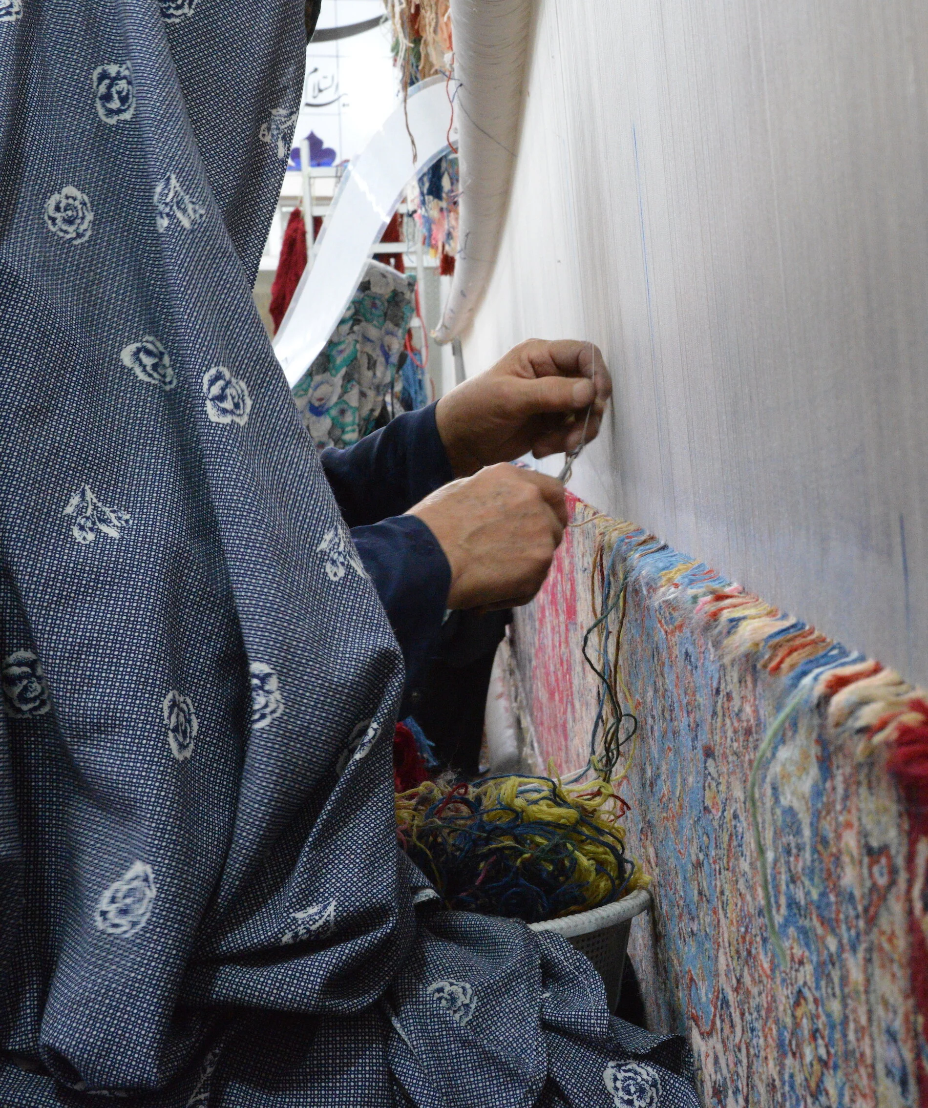 A designer laboriously drafts the design on paper before the weavers translate it into an intricate classic carpet.